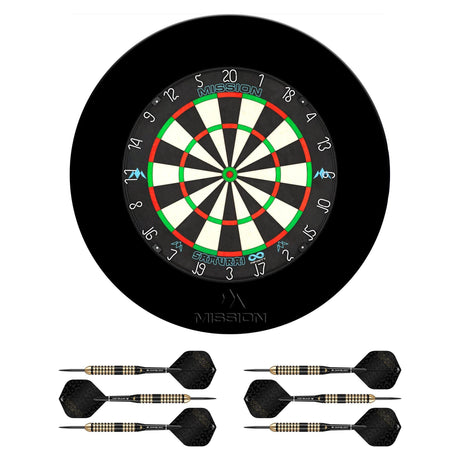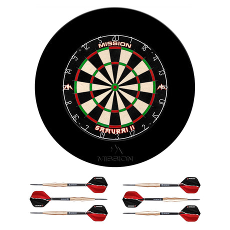 Mission Samurai II Dartboard Set - Dart Board, Surround & 2 sets of Brass Darts - Black