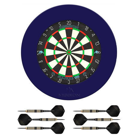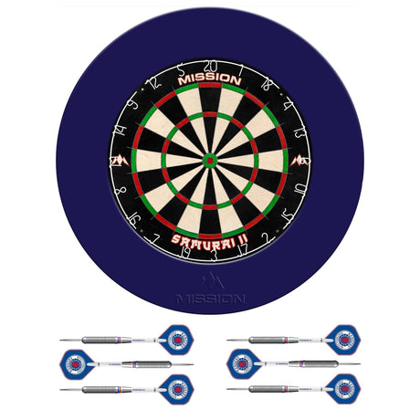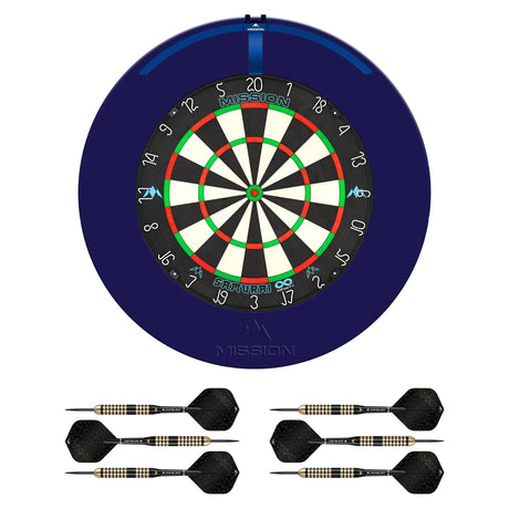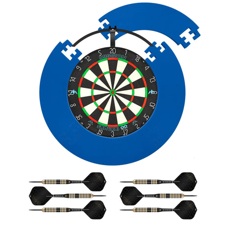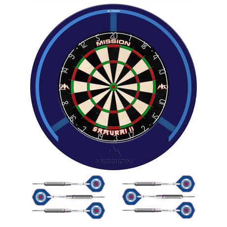 Mission Samurai Infinity Dartboard Set - Dart Board, Surround, Torus 270 Light & 2 sets of Brass Darts - Blue