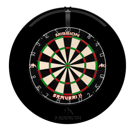 Mission Samurai II Dartboard Set - Dart Board, Jigsaw Surround, Torus 100 Light & 2 sets of Brass Darts - Black