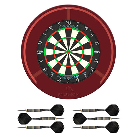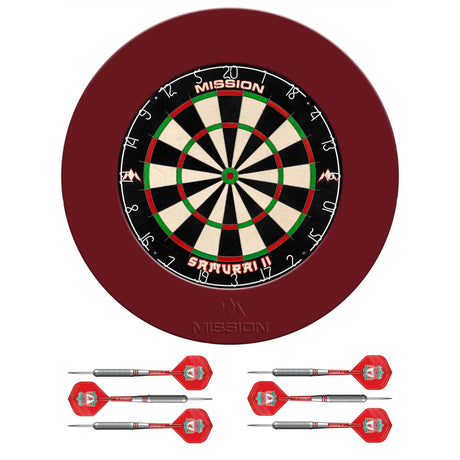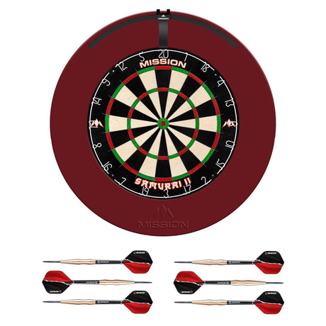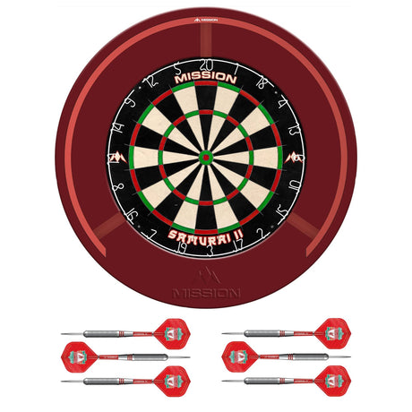 Mission Samurai II Dartboard Set - Dart Board, Surround & Torus 100 Light - Red