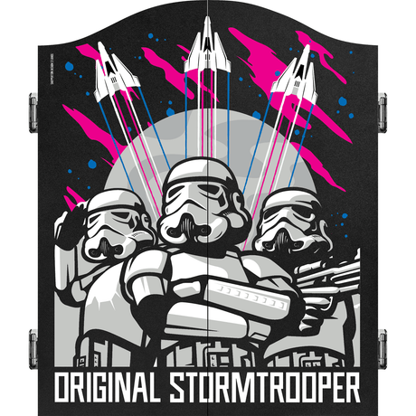Original StormTrooper Dartboard Cabinet - C2 - Black Base - Storm Trooper - Aim Throw Miss Repeat