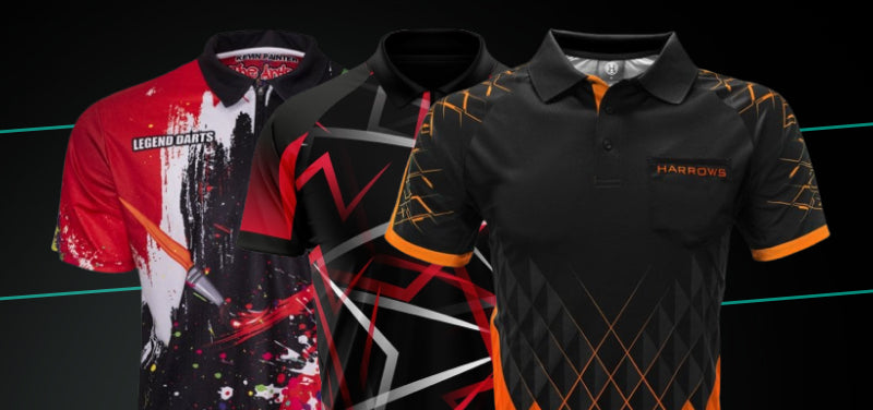 Our top-quality range of darts clothing includes a great array of designer brand options, ensuring that players of all ages, size or talent are catered for. From our collection of personalised darts shirts to help kit out your darts team, to replica player shirts t-shirts and hoodies, we have everything you need to play your favourite sport in comfort and style, with high-quality dart clothing in sizes small to 5XL from brands such as Mission, Harrows and Arraz.