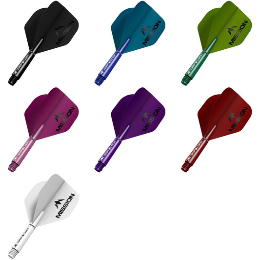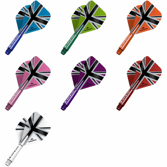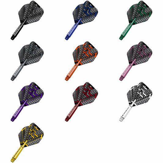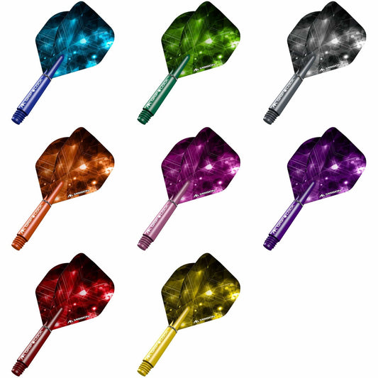 Pick our combined darts flights and stems sets to get the perfect combination of form and style! Choose from various colours, designs and styles in our combined darts flights and shafts range and find the ideal darts essentials all available in one set. Integrated flights and stems can’t separate in flight or save time searching individually for dart stems and flights with this range with both together in one place and from leading darts brands such as Harrows, Unicorn, Condor and Cuesoul.