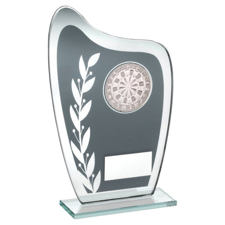 Clear Glass Block Darts Trophy - Lasered Darts and Dartboard - Trophy Award
