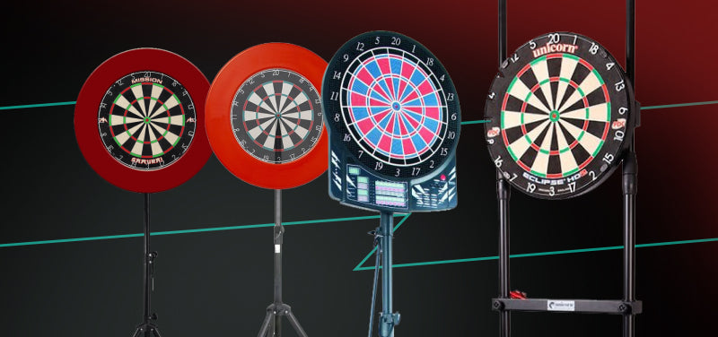 Dartboard stands are perfect for players who want to play darts on-the-go, and with a professional setup, but can’t drill holes into their walls or want to easily move their board around the home. This wide range of dart board stands includes fully portable and lightweight options, as well as door hanging systems, from some of the leading brands in darts.