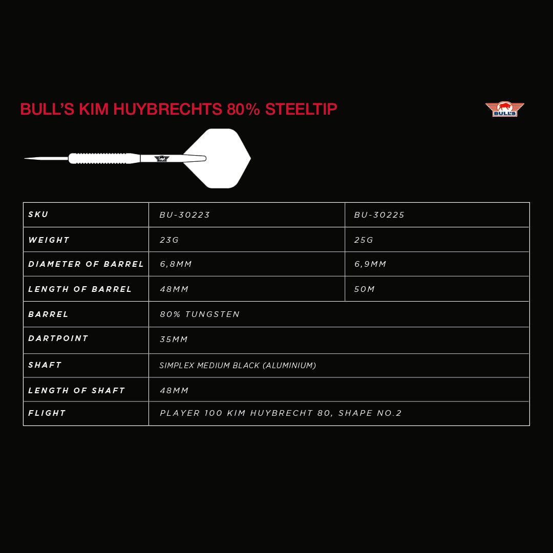Bulls Kim Huybrechts Darts - Steel Tip - 80% Tungsten - 23g is backordered and will ship as soon as it is back in stock.