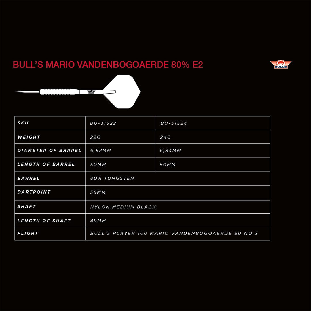 Bulls Mario Vandenbogaerde Darts - Steel Tip - 80% Tungsten - 22g is backordered and will ship as soon as it is back in stock.