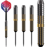 The Caliburn steel tip darts collection includes plenty of designs with darts in black titanium, gold and blue coatings to cater for the preferences of every player. The Caliburn Sandy II Dart is a visually striking dart from this range and is made from a premium 95% tungsten. This dart features a straight barrel with a ring grip and gold coating at the front and a dot grip and black coating at the rear, to cater for players who hold the dart at the front or rear of the dart.