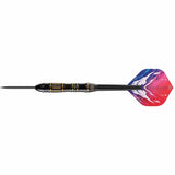 The Caliburn steel tip darts collection includes plenty of designs with darts in black titanium, gold and blue coatings to cater for the preferences of every player. The Caliburn Sandy II Dart is a visually striking dart from this range and is made from a premium 95% tungsten. This dart features a straight barrel with a ring grip and gold coating at the front and a dot grip and black coating at the rear, to cater for players who hold the dart at the front or rear of the dart.