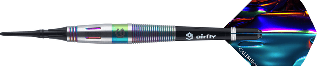 The range of Caliburn soft tip darts has some exciting options in 90% tungsten and 95% tungsten, with the Caliburn Raine Dart a favourite of ours at Darts Corner. This dart is made of a premium 95% tungsten and really stands out from the rest with a rainbow coating on the barrels. The straight barrel design also has milled cuts along the ring sections of the barrel, offering players plenty of grip.
