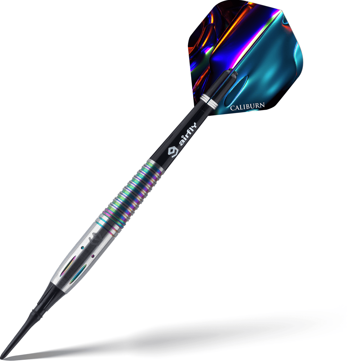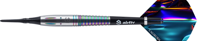 The range of Caliburn soft tip darts has some exciting options in 90% tungsten and 95% tungsten, with the Caliburn Raine Dart a favourite of ours at Darts Corner. This dart is made of a premium 95% tungsten and really stands out from the rest with a rainbow coating on the barrels. The straight barrel design also has milled cuts along the ring sections of the barrel, offering players plenty of grip.