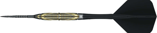 The Caliburn steel tip darts collection includes plenty of designs with darts in black titanium, gold and blue coatings to cater for the preferences of every player. The Caliburn Sandy II Dart is a visually striking dart from this range and is made from a premium 95% tungsten. This dart features a straight barrel with a ring grip and gold coating at the front and a dot grip and black coating at the rear, to cater for players who hold the dart at the front or rear of the dart.