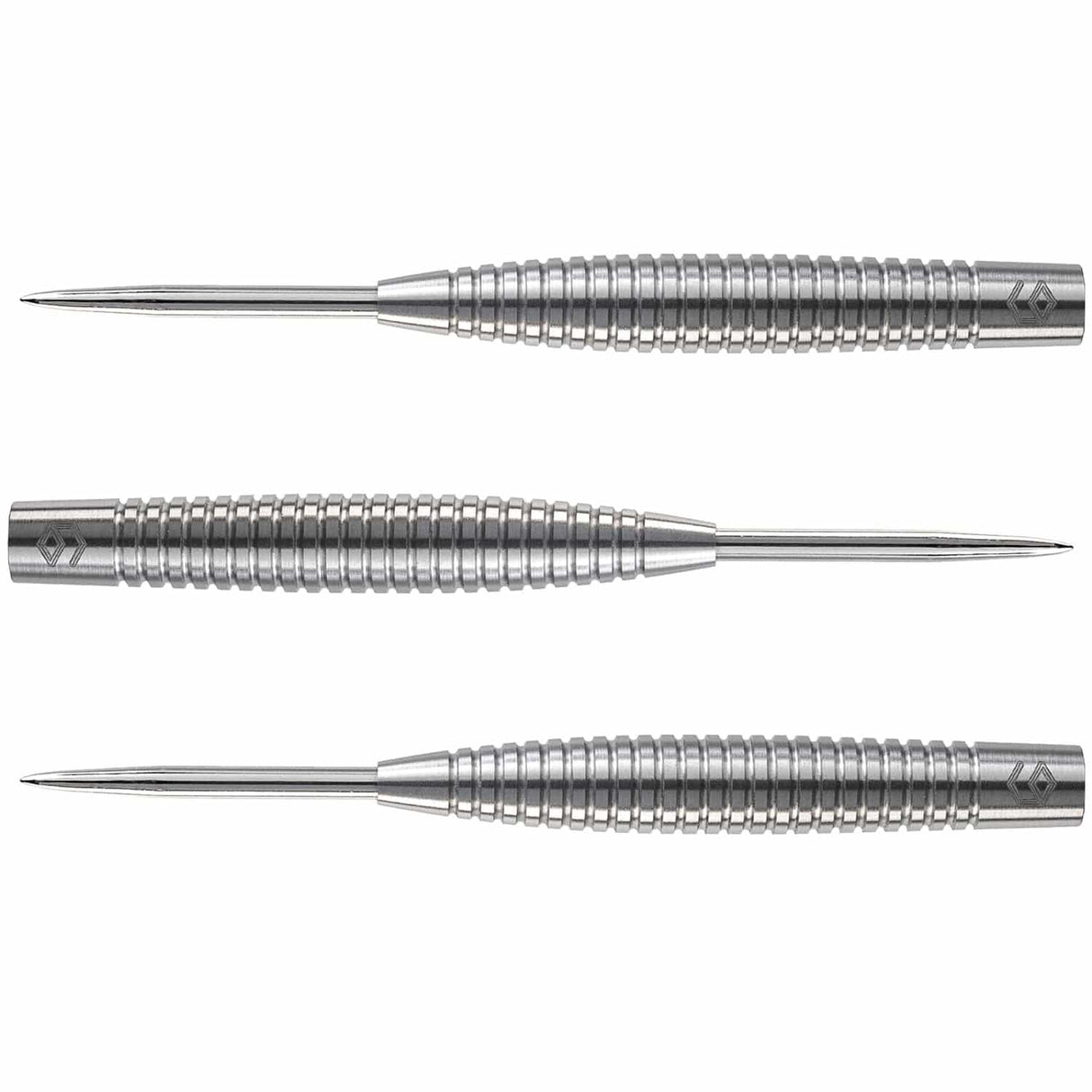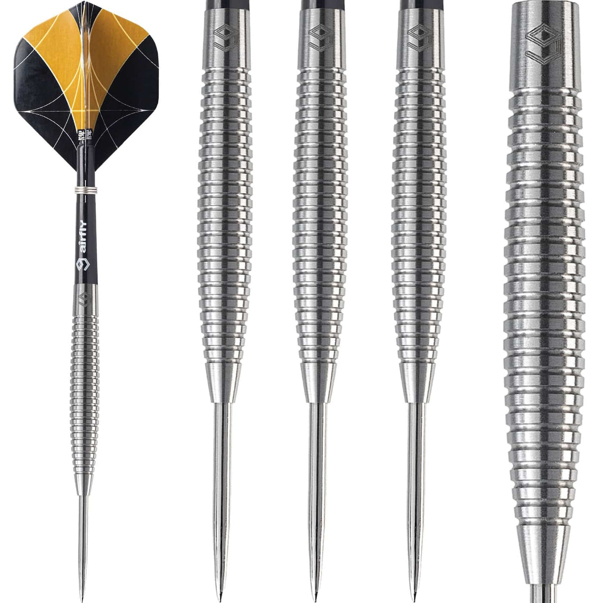 The Caliburn steel tip darts collection includes plenty of designs with darts in black titanium, gold and blue coatings to cater for the preferences of every player. The Caliburn Sandy II Dart is a visually striking dart from this range and is made from a premium 95% tungsten. This dart features a straight barrel with a ring grip and gold coating at the front and a dot grip and black coating at the rear, to cater for players who hold the dart at the front or rear of the dart.