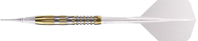 The Caliburn steel tip darts collection includes plenty of designs with darts in black titanium, gold and blue coatings to cater for the preferences of every player. The Caliburn Sandy II Dart is a visually striking dart from this range and is made from a premium 95% tungsten. This dart features a straight barrel with a ring grip and gold coating at the front and a dot grip and black coating at the rear, to cater for players who hold the dart at the front or rear of the dart.
