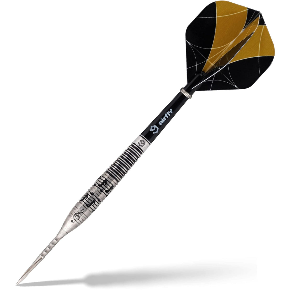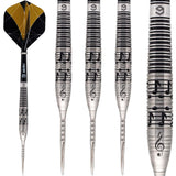 The Caliburn steel tip darts collection includes plenty of designs with darts in black titanium, gold and blue coatings to cater for the preferences of every player. The Caliburn Sandy II Dart is a visually striking dart from this range and is made from a premium 95% tungsten. This dart features a straight barrel with a ring grip and gold coating at the front and a dot grip and black coating at the rear, to cater for players who hold the dart at the front or rear of the dart.