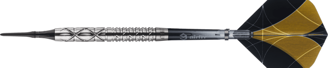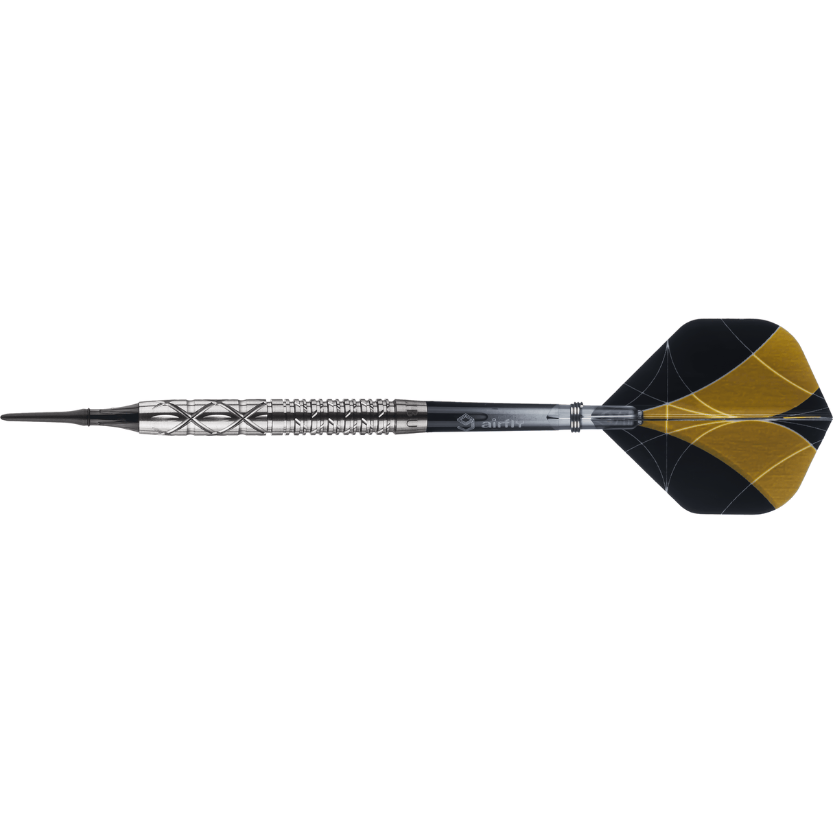 The Caliburn steel tip darts collection includes plenty of designs with darts in black titanium, gold and blue coatings to cater for the preferences of every player. The Caliburn Sandy II Dart is a visually striking dart from this range and is made from a premium 95% tungsten. This dart features a straight barrel with a ring grip and gold coating at the front and a dot grip and black coating at the rear, to cater for players who hold the dart at the front or rear of the dart.