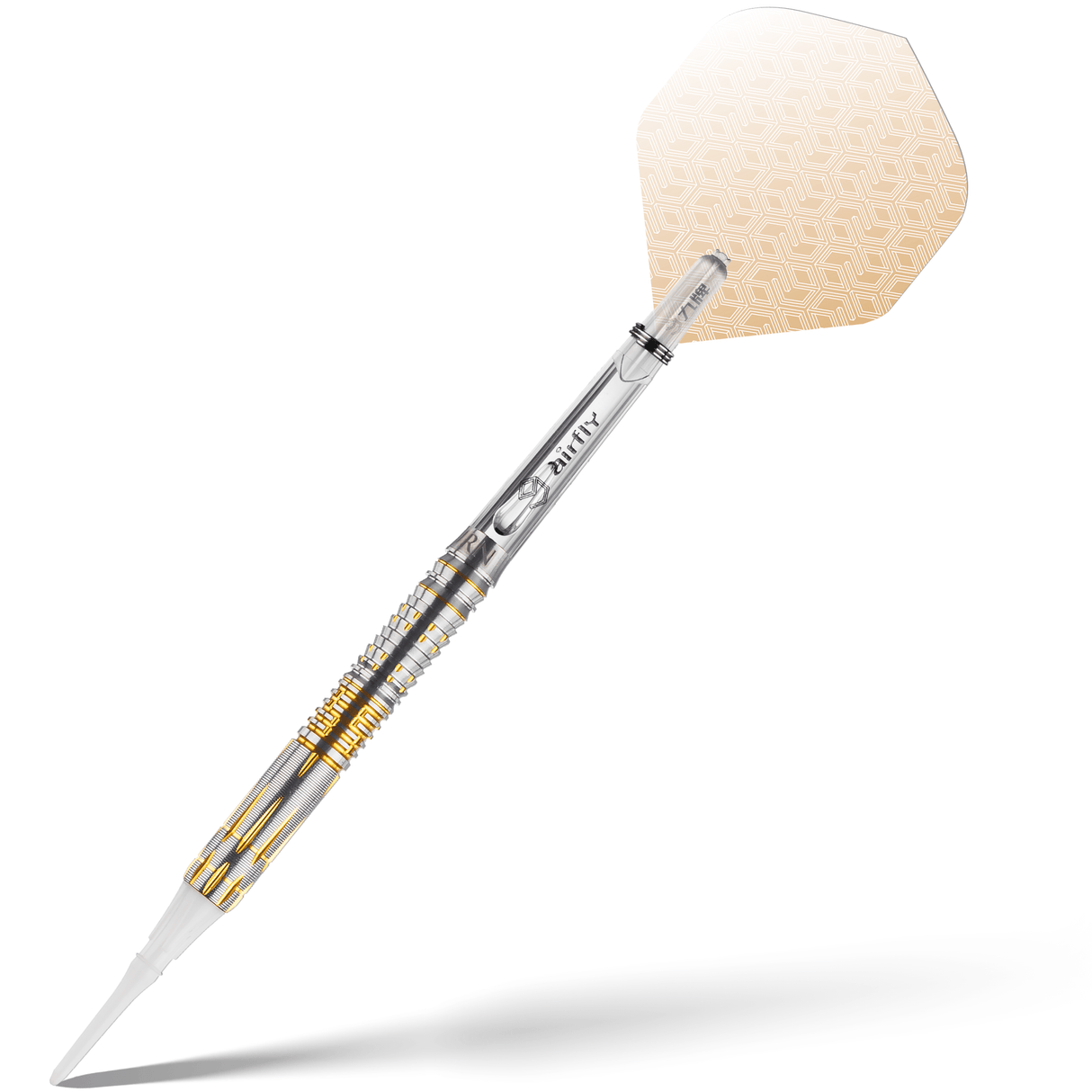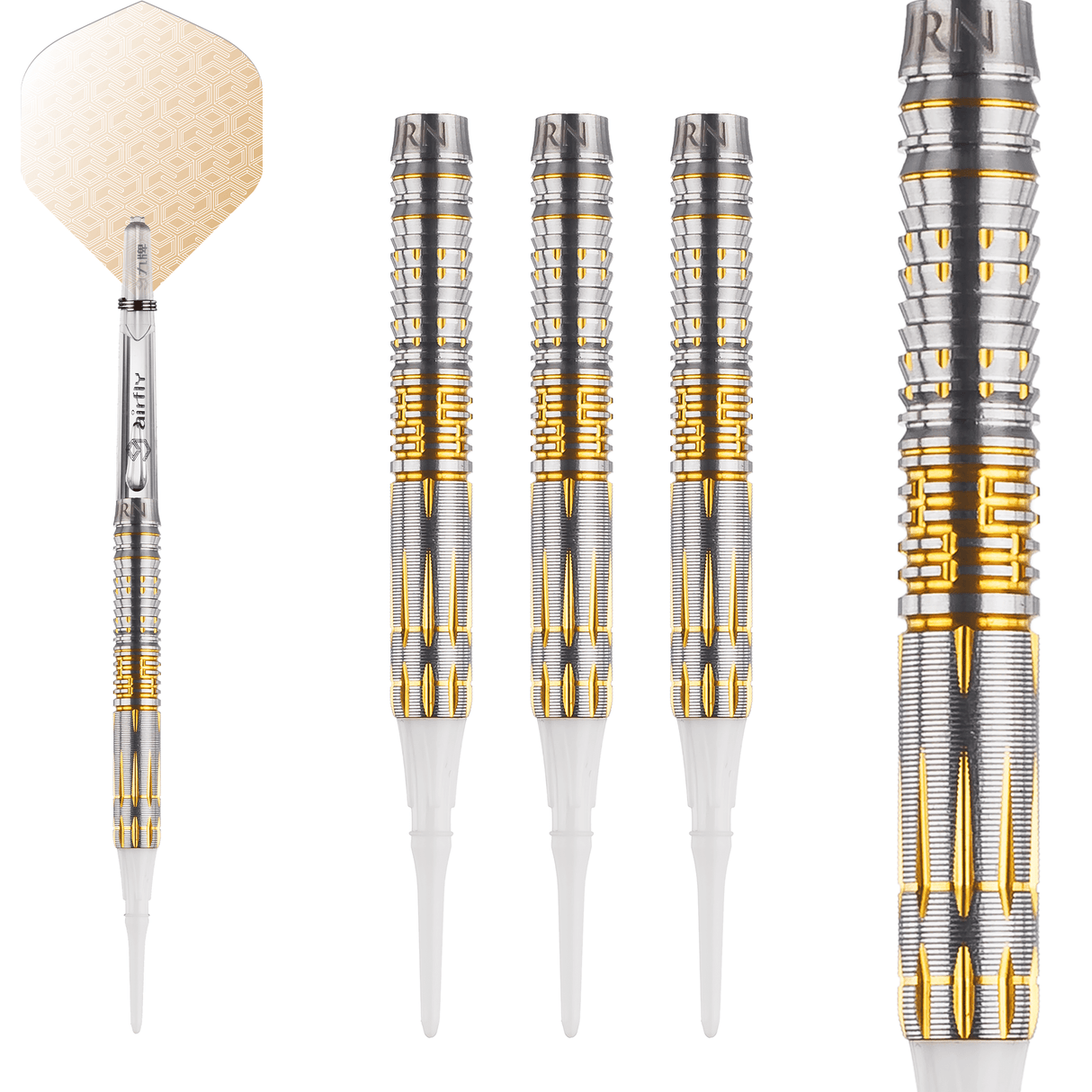 The range of Caliburn soft tip darts has some exciting options in 90% tungsten and 95% tungsten, with the Caliburn Raine Dart a favourite of ours at Darts Corner. This dart is made of a premium 95% tungsten and really stands out from the rest with a rainbow coating on the barrels. The straight barrel design also has milled cuts along the ring sections of the barrel, offering players plenty of grip.