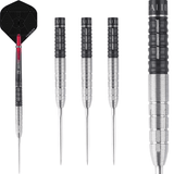 The Caliburn steel tip darts collection includes plenty of designs with darts in black titanium, gold and blue coatings to cater for the preferences of every player. The Caliburn Sandy II Dart is a visually striking dart from this range and is made from a premium 95% tungsten. This dart features a straight barrel with a ring grip and gold coating at the front and a dot grip and black coating at the rear, to cater for players who hold the dart at the front or rear of the dart.