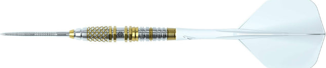 The Caliburn steel tip darts collection includes plenty of designs with darts in black titanium, gold and blue coatings to cater for the preferences of every player. The Caliburn Sandy II Dart is a visually striking dart from this range and is made from a premium 95% tungsten. This dart features a straight barrel with a ring grip and gold coating at the front and a dot grip and black coating at the rear, to cater for players who hold the dart at the front or rear of the dart.