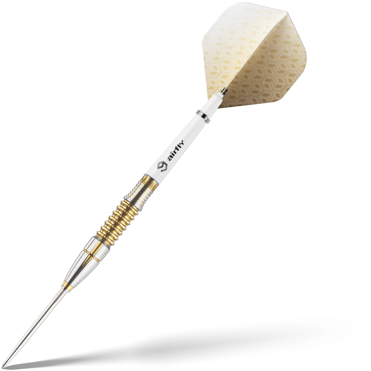 The Caliburn steel tip darts collection includes plenty of designs with darts in black titanium, gold and blue coatings to cater for the preferences of every player. The Caliburn Sandy II Dart is a visually striking dart from this range and is made from a premium 95% tungsten. This dart features a straight barrel with a ring grip and gold coating at the front and a dot grip and black coating at the rear, to cater for players who hold the dart at the front or rear of the dart.