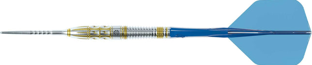 The Caliburn steel tip darts collection includes plenty of designs with darts in black titanium, gold and blue coatings to cater for the preferences of every player. The Caliburn Sandy II Dart is a visually striking dart from this range and is made from a premium 95% tungsten. This dart features a straight barrel with a ring grip and gold coating at the front and a dot grip and black coating at the rear, to cater for players who hold the dart at the front or rear of the dart.