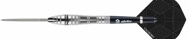 The Caliburn steel tip darts collection includes plenty of designs with darts in black titanium, gold and blue coatings to cater for the preferences of every player. The Caliburn Sandy II Dart is a visually striking dart from this range and is made from a premium 95% tungsten. This dart features a straight barrel with a ring grip and gold coating at the front and a dot grip and black coating at the rear, to cater for players who hold the dart at the front or rear of the dart.
