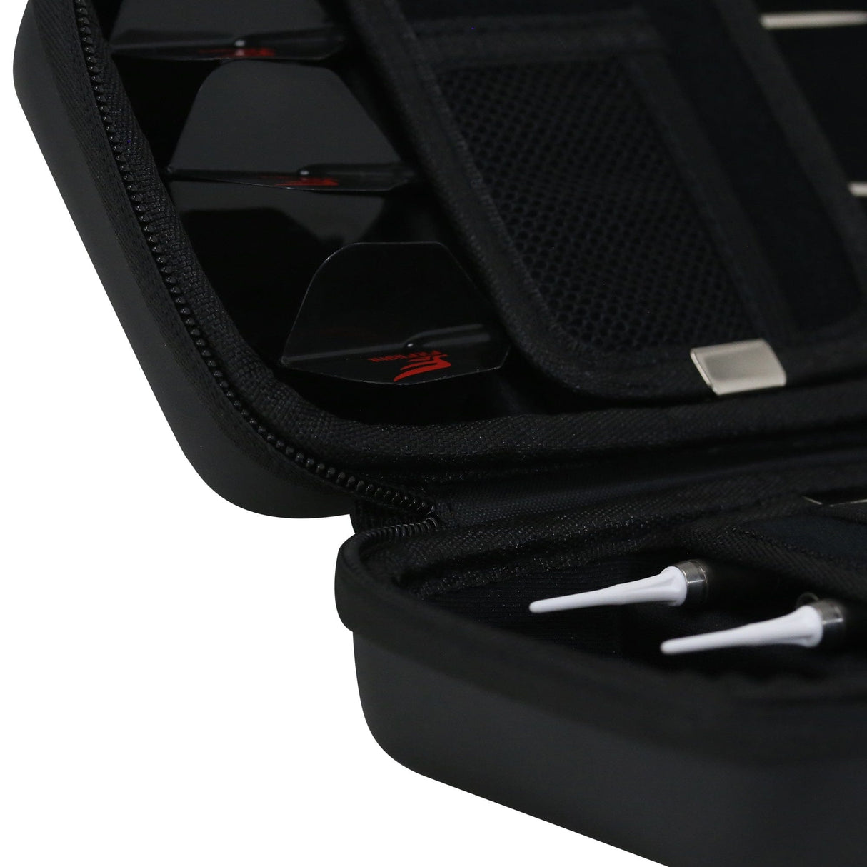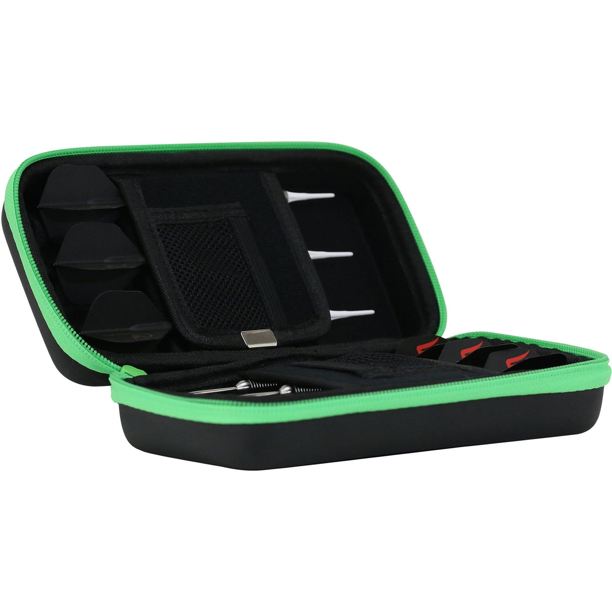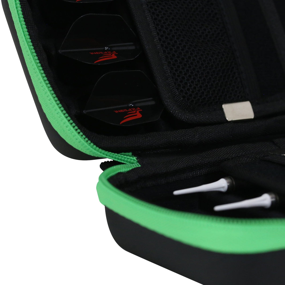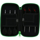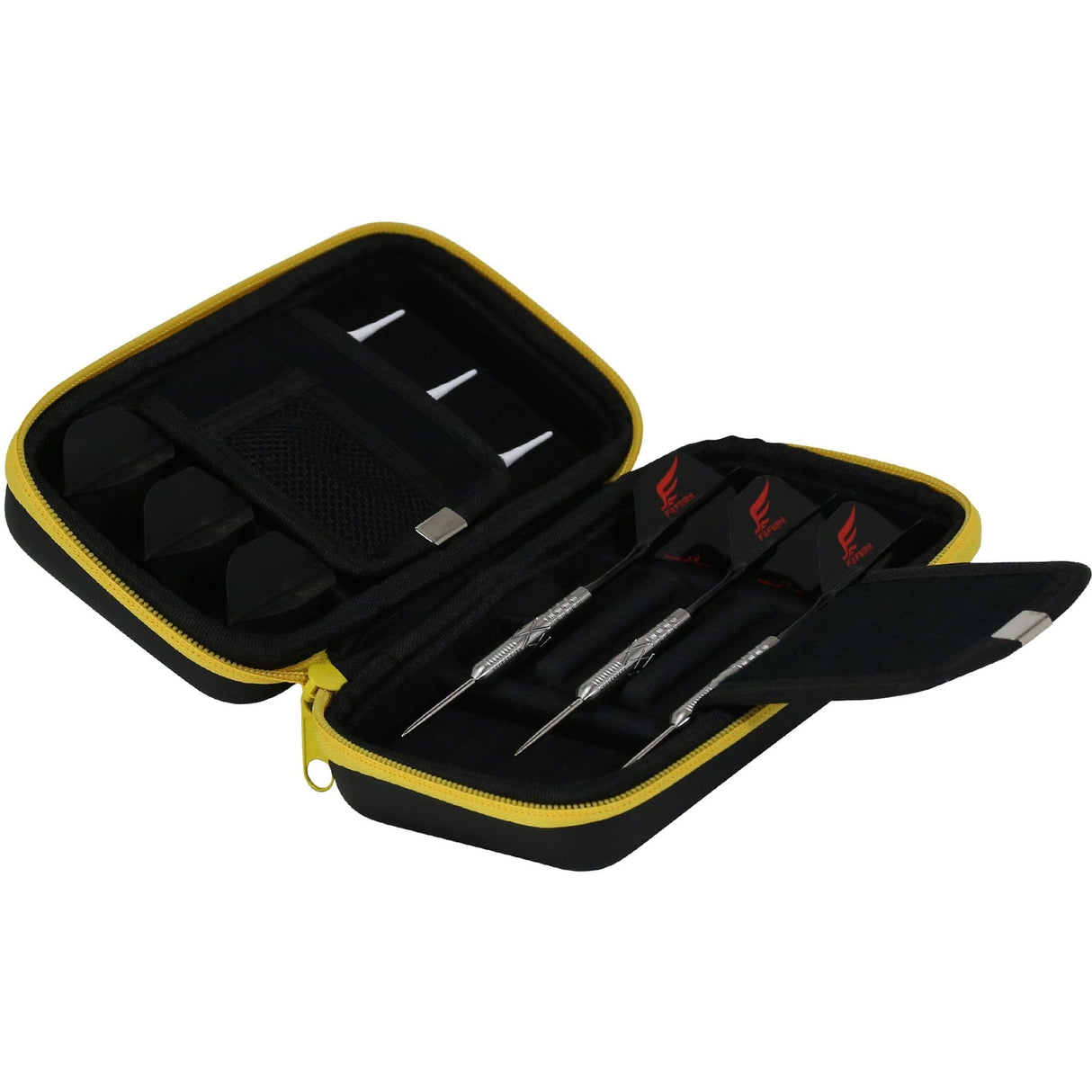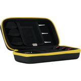 Cosmo Darts Clutch Neon Yellow Colour Trim Duo Dart Wallet - C16 - Large EVA Darts Case. Keep you kit safe and secure with this large darts case, perfect for 2 sets of fully assembled darts. This case comes in an all Black colour with Neon Yellow trim and a gold Cosmo Darts logo and zip fastening.