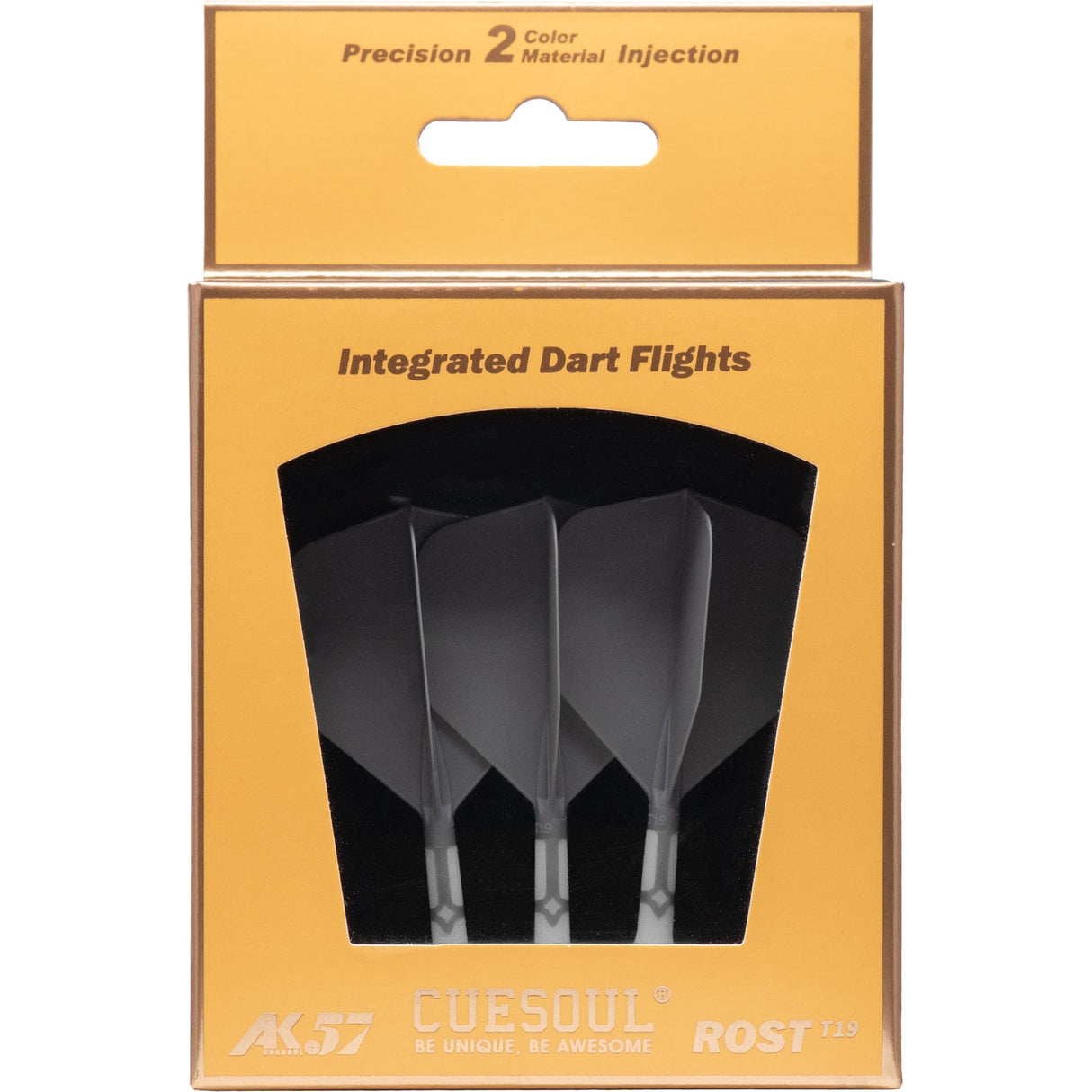 Cuesoul Rost T19 Integrated Dart Shaft and Flights - Big Wing - White with Grey Flight - Long is backordered and will ship as soon as it is back in stock.