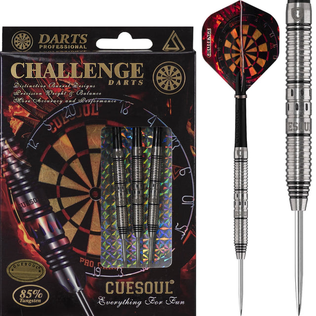 *Cuesoul - Steel Tip Tungsten Darts - Challenge - Multi Ring - Tapered - Black - 22g is backordered and will ship as soon as it is back in stock.