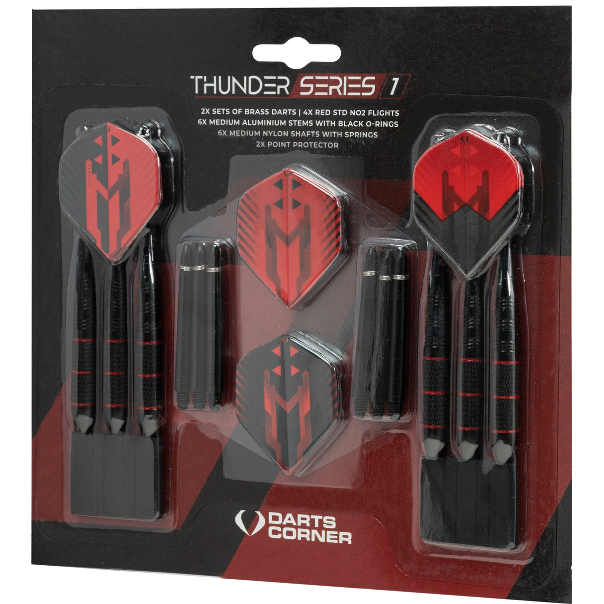 Darts Corner - Thunder Series 1 - Steel Tip Brass - 2 Sets Darts - M1 - Black & Red - 22g - 22g is backordered and will ship as soon as it is back in stock.
