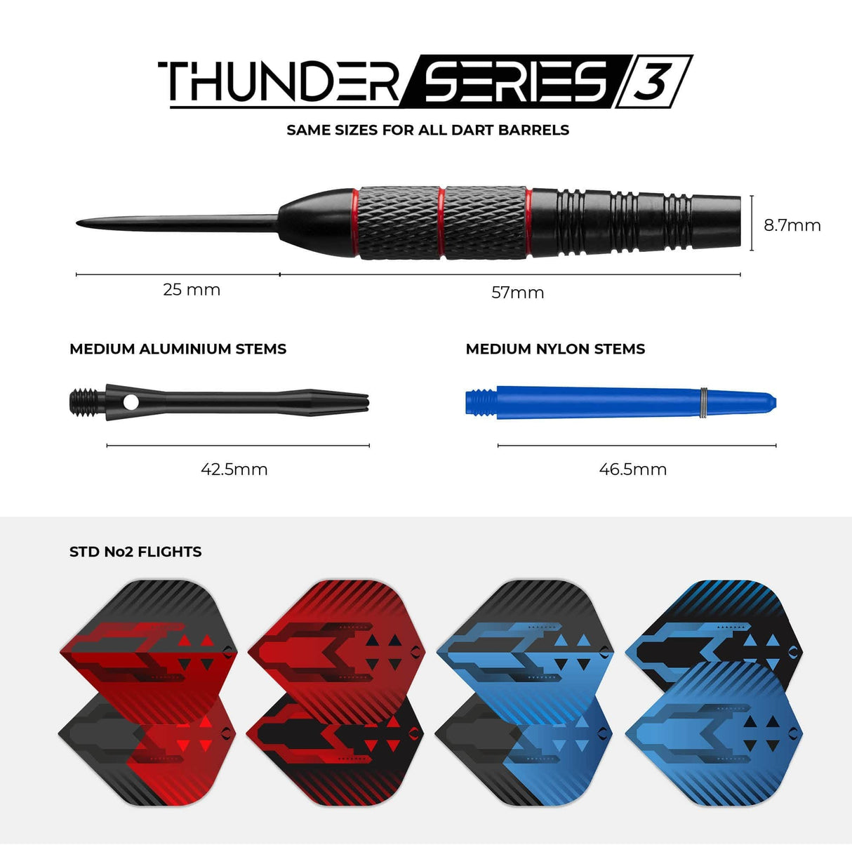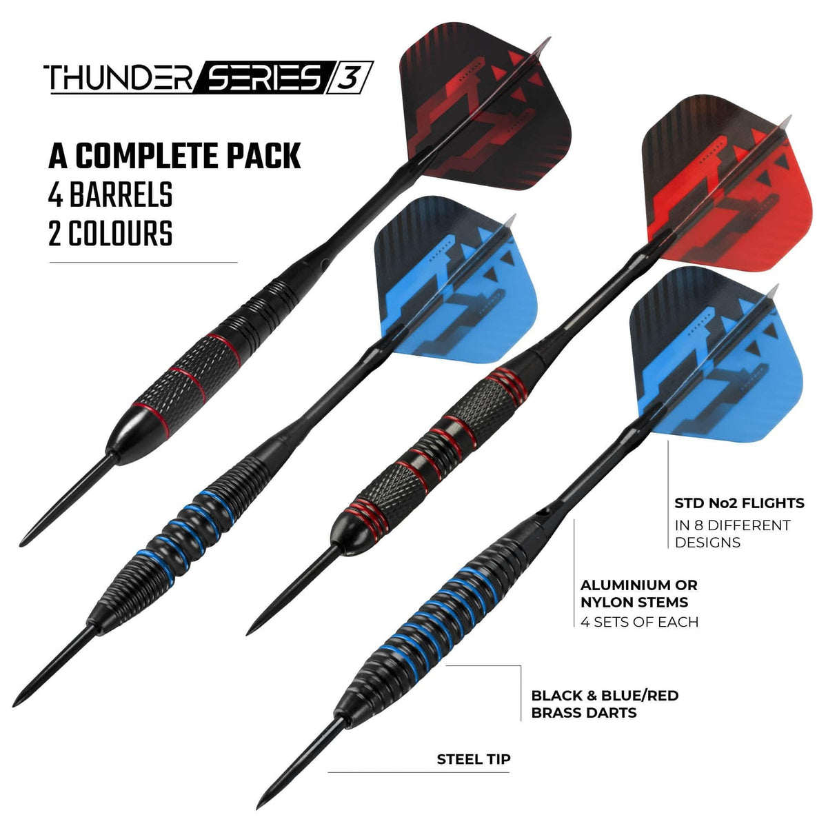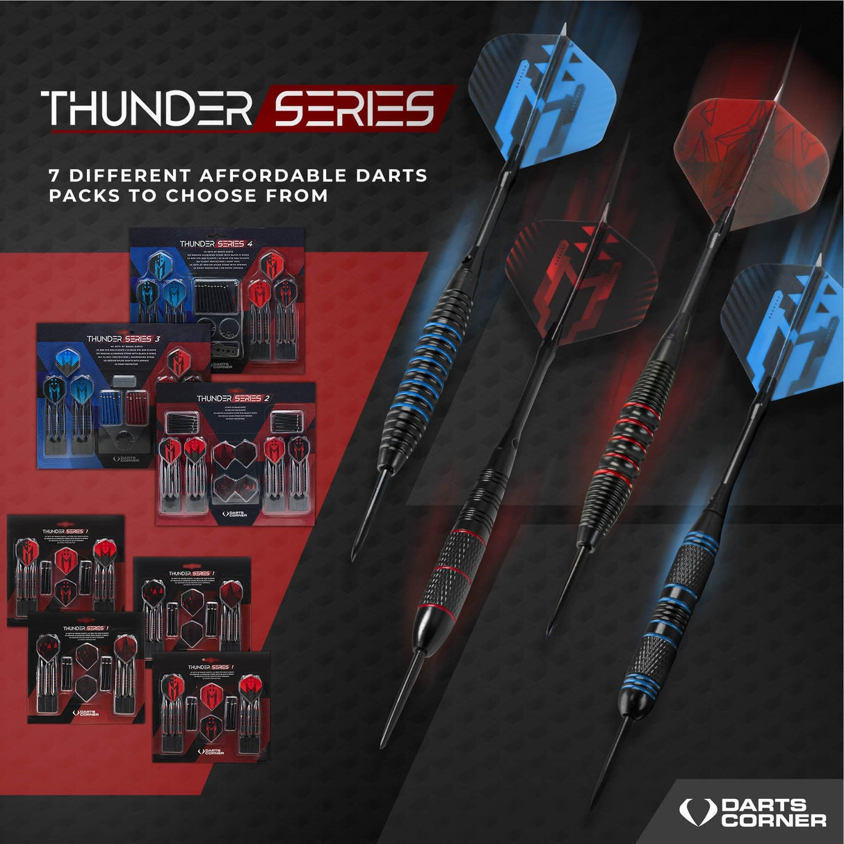 *Darts Corner - Thunder Series 3 - Steel Tip Brass - 4 Sets Darts - Blue & Red - 21g 22g 23g 24g - 23g is backordered and will ship as soon as it is back in stock.
