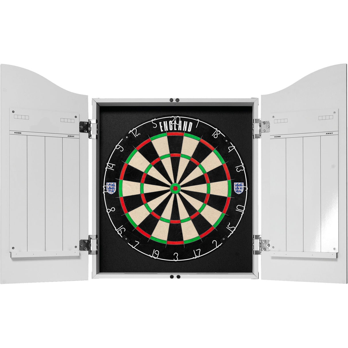 England Football Dartboard Cabinet - Official Licensed - C1 - White - 3 Lions Crest is backordered and will ship as soon as it is back in stock.