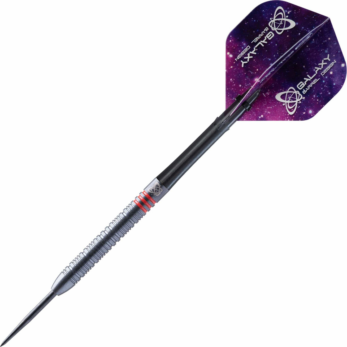 The Galaxy Alex Spellman Blue Rings Steel Tip Darts is another popular set from Galaxy’s players range. Alex Spellman’s signature darts are also made from 90% tungsten and feature single and dual ring cuts on the barrels, which have been enhanced by a blue coating to make them really stand out. The design of these barrels will fit any style of grip and throw and comes in a weight of 22g.