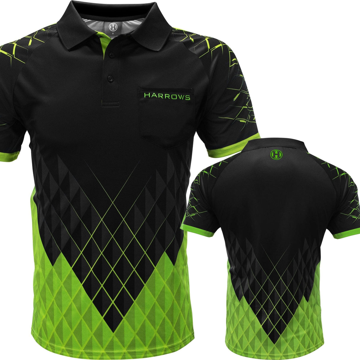 Harrows Paragon Dart Shirt - with Pocket - Black & Green - 2XL is backordered and will ship as soon as it is back in stock.
