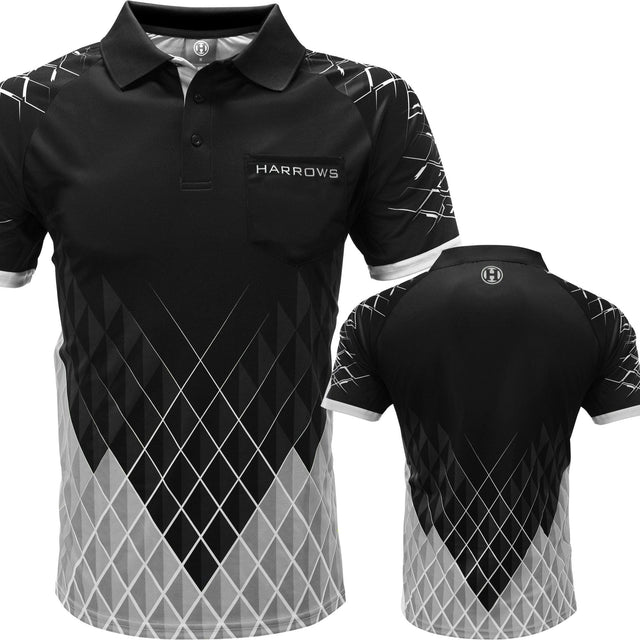 Harrows Paragon Dart Shirt - with Pocket - Black & White - 3XL is backordered and will ship as soon as it is back in stock.