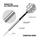 The Legend Darts range of steel tip darts offers plenty of variety with a full spectrum of weights and barrel shapes to choose from. Whether you prefer a dart with plenty of grip, like the Legend Darts Pro Series V11 Micro Ring, or your style suits a smooth barrel such as the Legend Darts Evolution Series B06 Black, every player can find their perfect dart for them in this collection.
