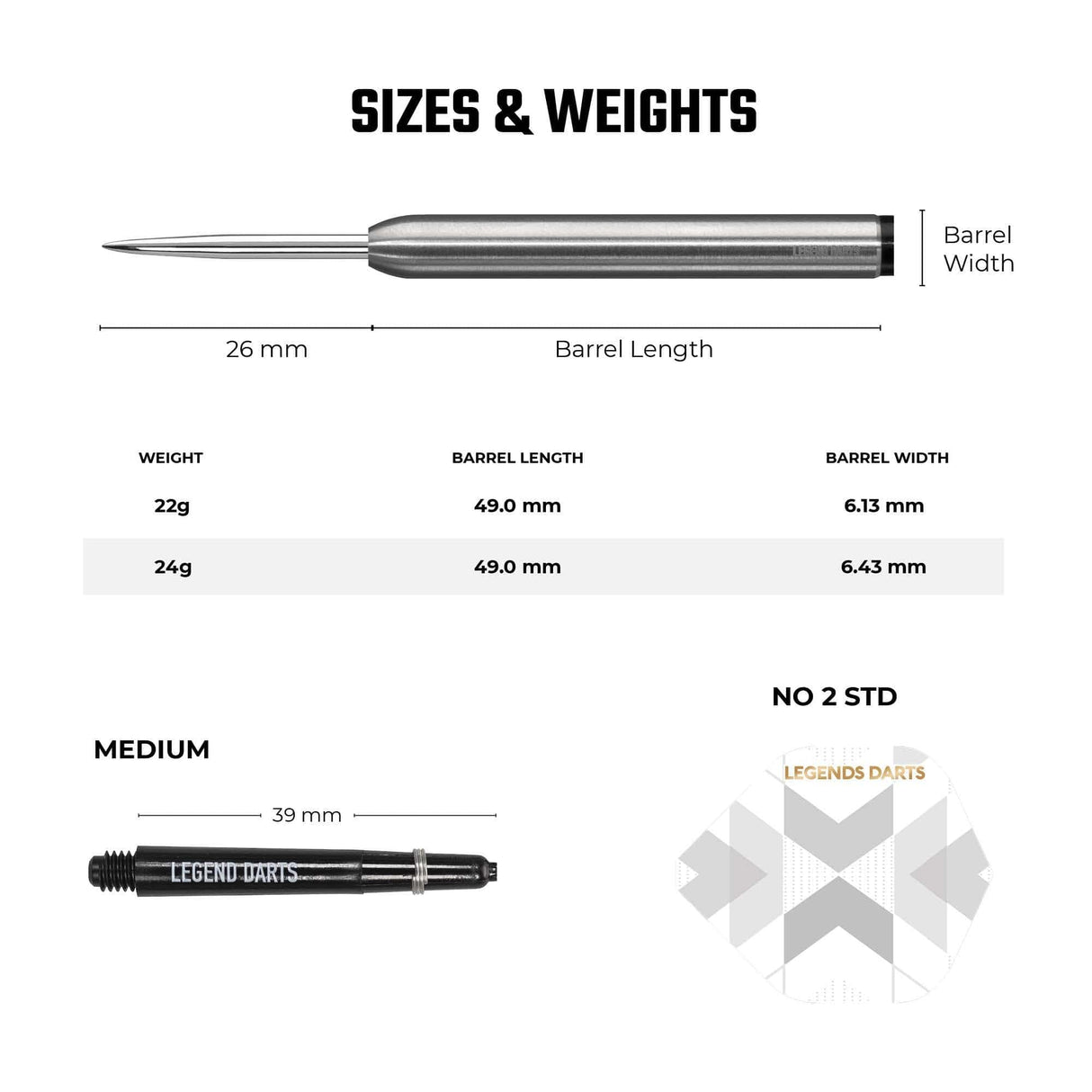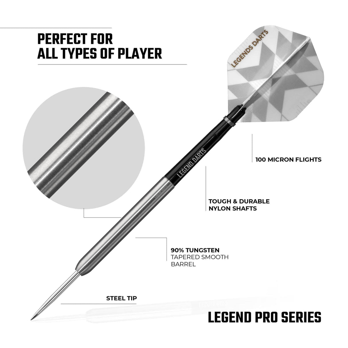 The Legend Darts range of steel tip darts offers plenty of variety with a full spectrum of weights and barrel shapes to choose from. Whether you prefer a dart with plenty of grip, like the Legend Darts Pro Series V11 Micro Ring, or your style suits a smooth barrel such as the Legend Darts Evolution Series B06 Black, every player can find their perfect dart for them in this collection.