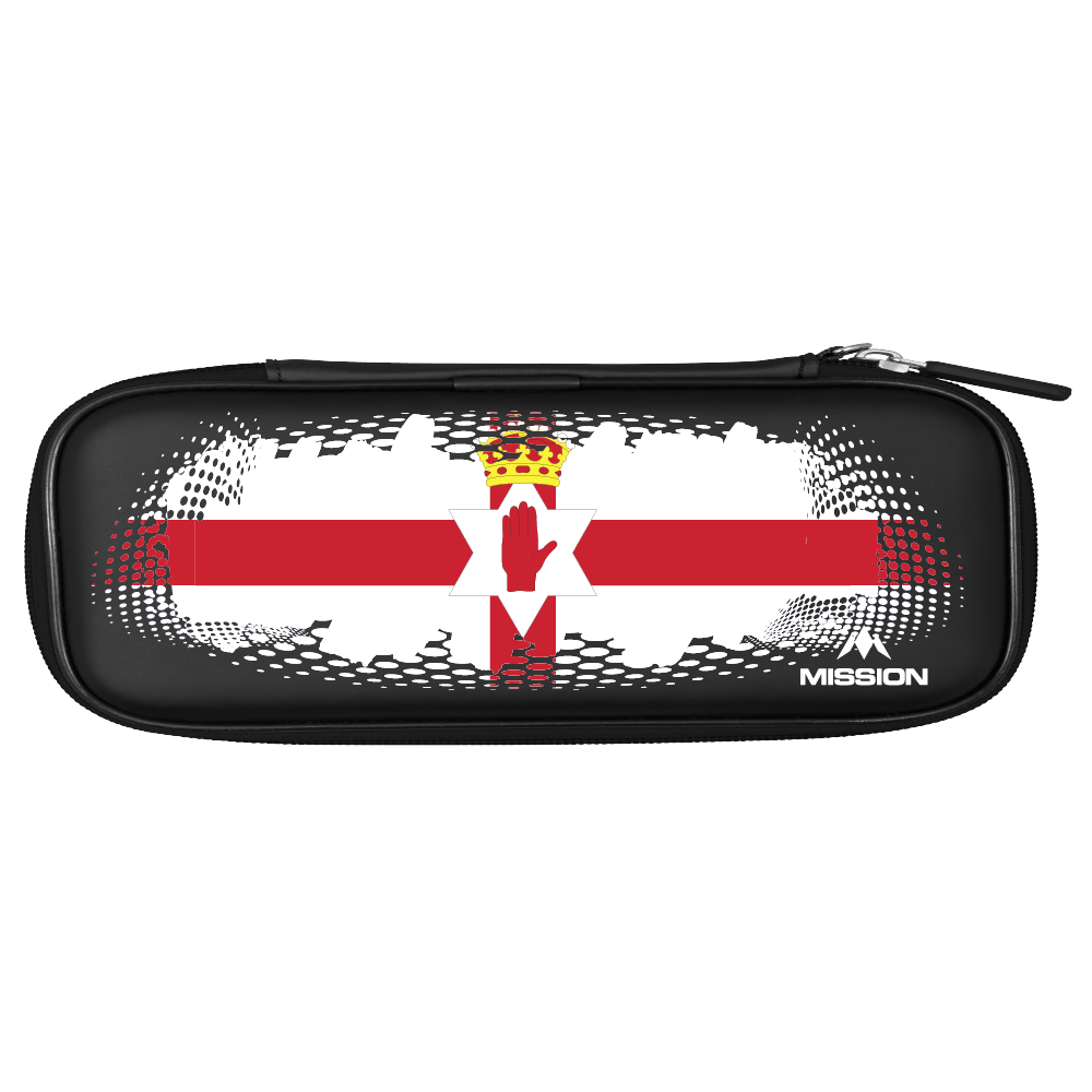Mission Country EVA Darts Case - Slim- Holds 1 full set - N. Ireland. This strong EVA Dart case holds one set of fully assembled darts, with pockets specifically designed to hold for additional flights, shafts and other accessories. Additional accessories sold separately. This item is printed to order and may take an extra 2-6 days for delivery
