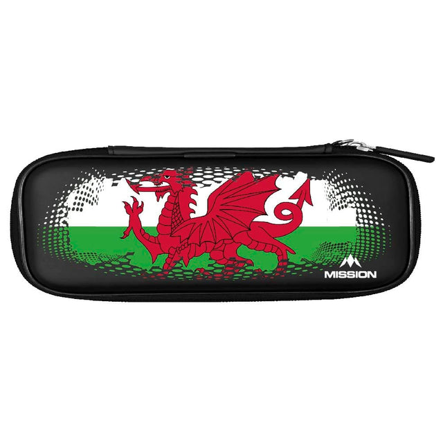 Mission Country EVA Darts Case - Slim- Holds 1 full set - Wales. This strong EVA Dart case holds one set of fully assembled darts, with pockets specifically designed to hold for additional flights, shafts and other accessories. Additional accessories sold separately. This item is printed to order and may take an extra 2-6 days for delivery
