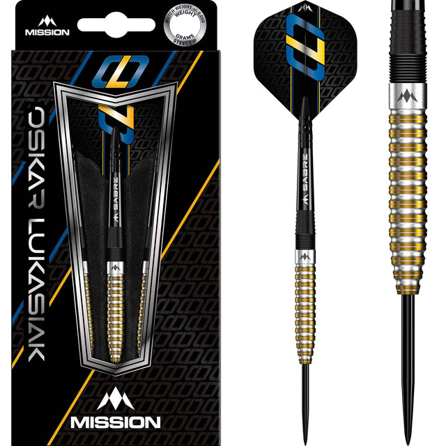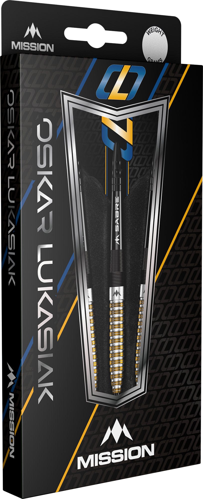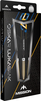 Mission Oskar Lukasiak Darts - Steel Tip - 95% Tungsten - Black & Gold PVD - 22g is backordered and will ship as soon as it is back in stock.