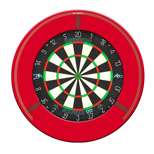 Mission Samurai Infinity Dartboard Set - Dart Board, Surround & Torus 270 Light - Red is backordered and will ship as soon as it is back in stock.
