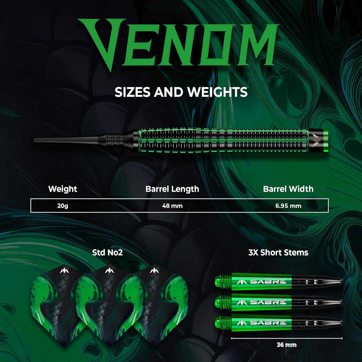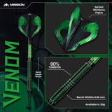 Mission Venom Darts - Steel Tip - 90% Tungsten - Black & Green Electro - 23g is backordered and will ship as soon as it is back in stock.