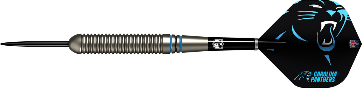 Officially Licensed NFL Steel Tip Darts - Coated Brass. Includes: Coated Brass Barrels, NFL Licensed Flights, 1 Set of Nylon Shafts with rings, Point Protector NFL - Steel Tip Brass Darts - Officially Licensed - Carolina Panthers - 22g Steel Tip