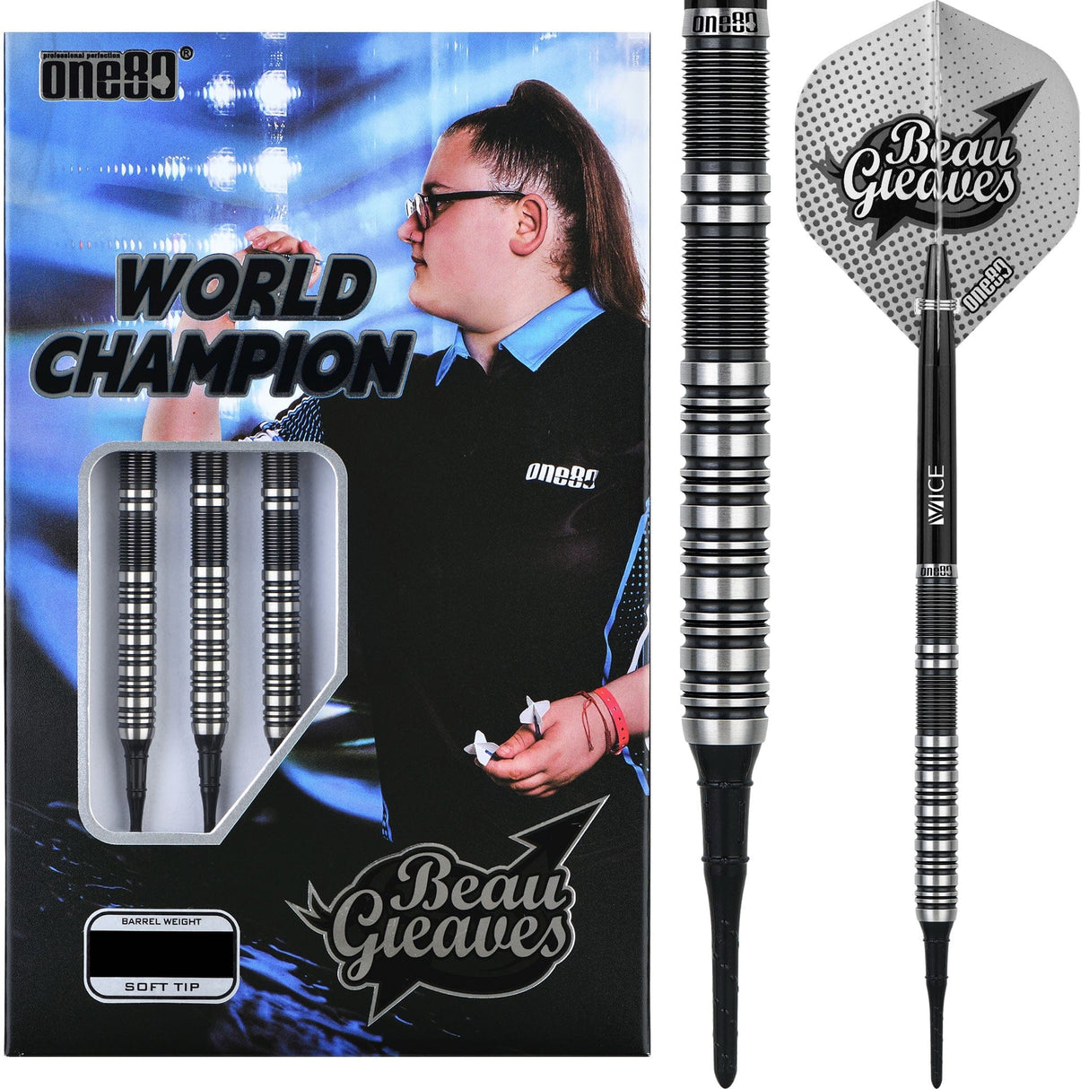 *One80 Beau Greaves Darts - Soft Tip - HD - Black & Silver - 18g is backordered and will ship as soon as it is back in stock.