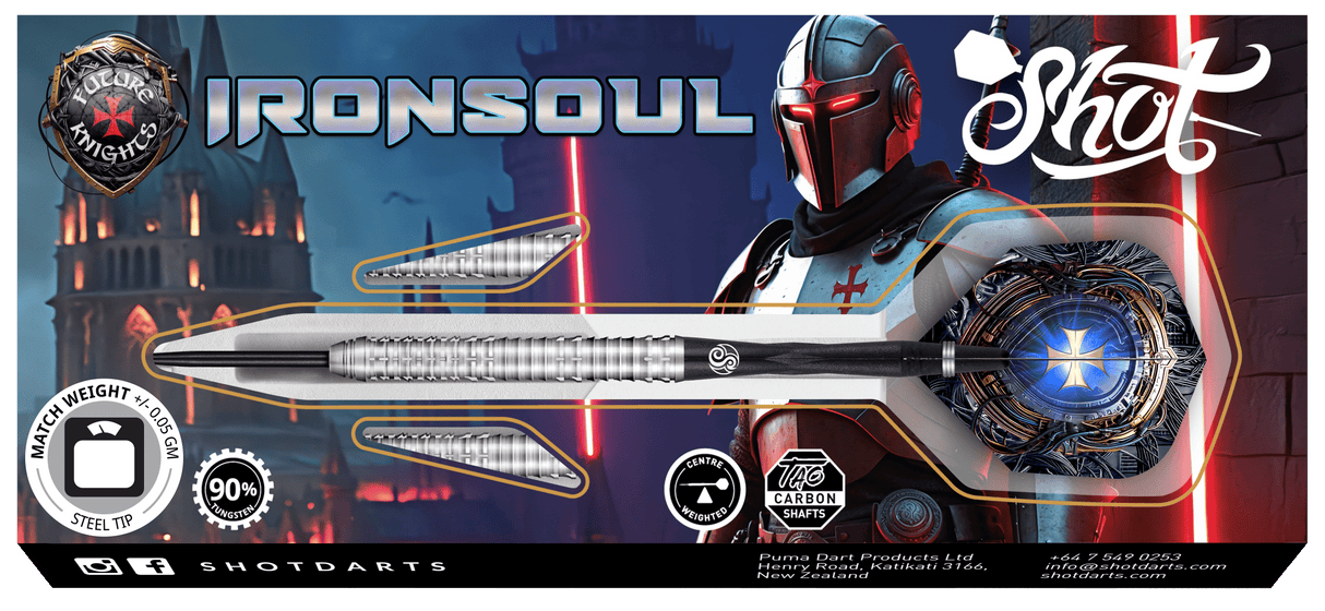 Shot Future Knights Darts - Steel Tip - 90% Tungsten - Ironsoul - 23g is backordered and will ship as soon as it is back in stock.