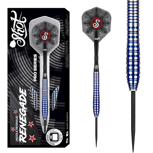Shot Pro Series Darts - Steel Tip - 90% Tungsten - Nicole Regnaud - 23g is backordered and will ship as soon as it is back in stock.