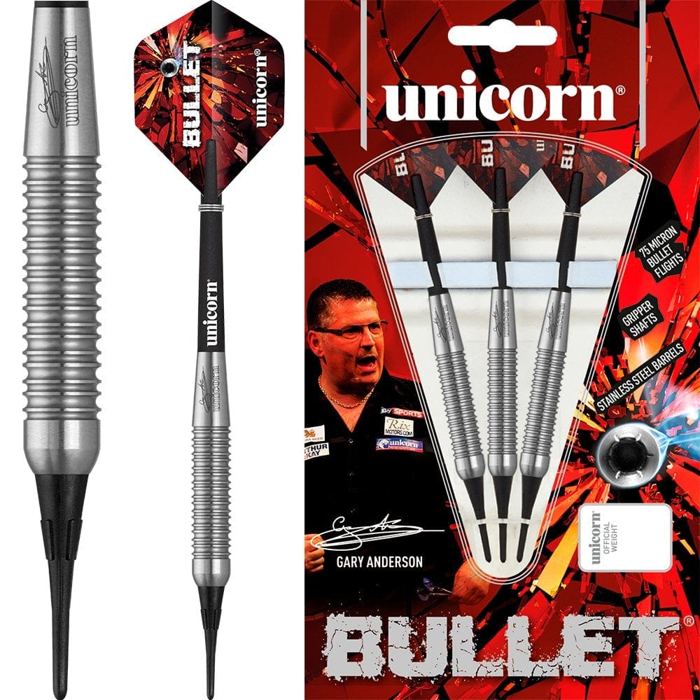 Unicorn Bullet Darts - Soft Tip Stainless Steel - GA1 - Gary Anderson - 18g is backordered and will ship as soon as it is back in stock.